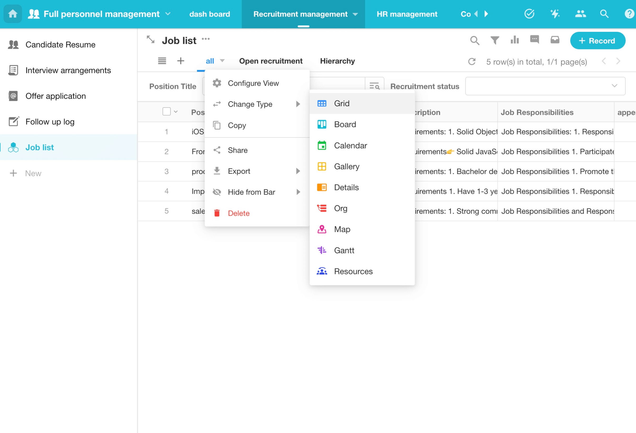 Worksheet, View, Chart, Page, Workflow, Role and Portal